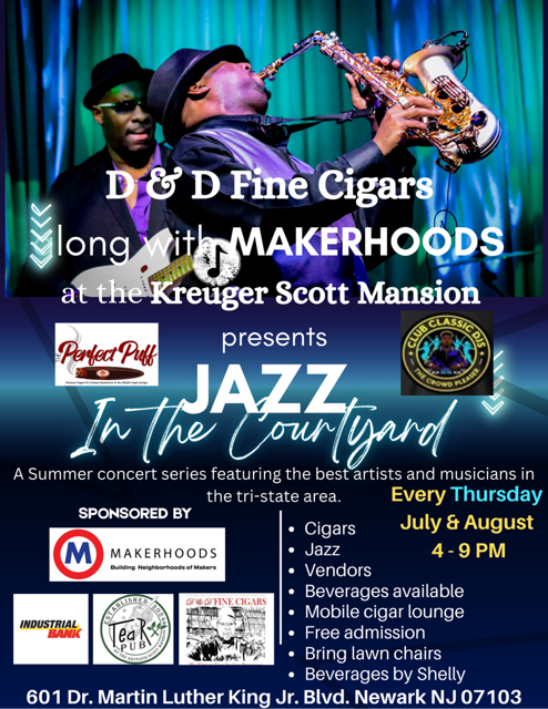 D&D Fine Cigars, in proud collaboration with MAKERHOODS and hosted at the historic Krueger Scott Mansion, invites you to an unforgettable summer evening series: Jazz in the Courtyard. This dynamic weekly event brings together the soulful sounds of the region's finest jazz artists and musicians for a vibrant celebration of culture, community, and craftsmanship.